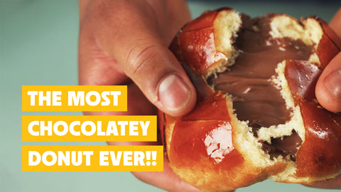 Soft, airy donuts filled with silky chocolate cream and finished with a crisp caramel shell for a crème brûlée-style crack.