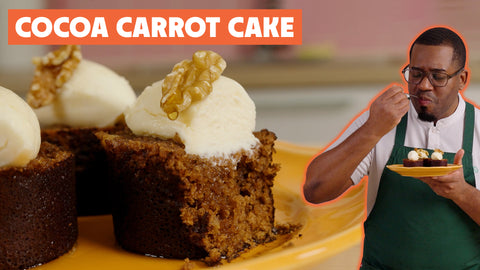 A smooth, well-balanced alkalised cocoa powder works best here. It blends easily into the batter, deepens the colour of the crumb, and adds richness without overpowering the carrot or spices.
