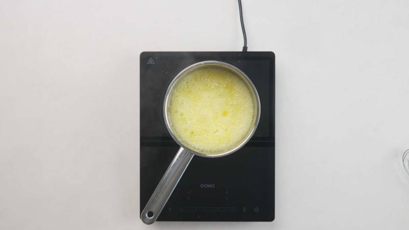 Verwarm in een steelpan op middelhoog vuur het water en de kristalsuiker. Laat koken totdat het mengsel licht van kleur wordt. Voeg de room en boter toe aan de pan. Roer tot het mengsel glad en goed gemengd is.