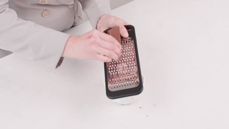 Use a box grater with the side that has the finest holes for grating your chocolate, and add it on top of your mousse.