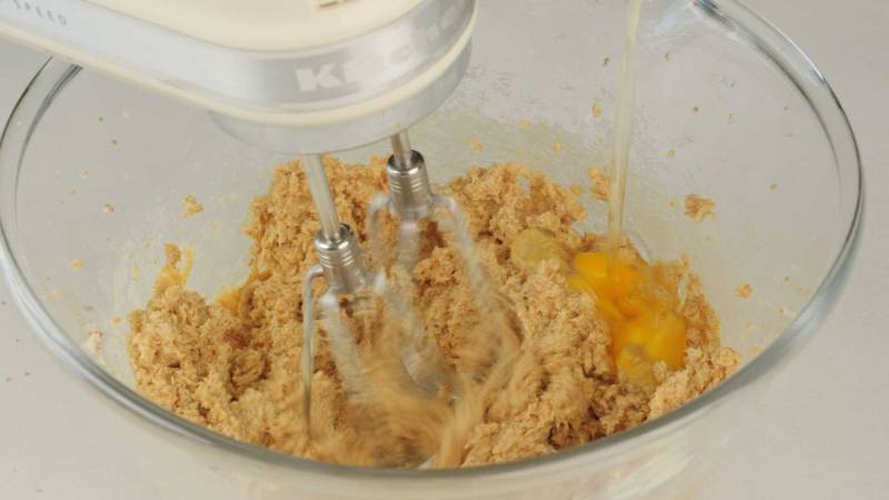 In a large mixing bowl, beat sugar and egg until light and fluffy for about 1 minute. Add butter and vanilla, mixing until well combined.